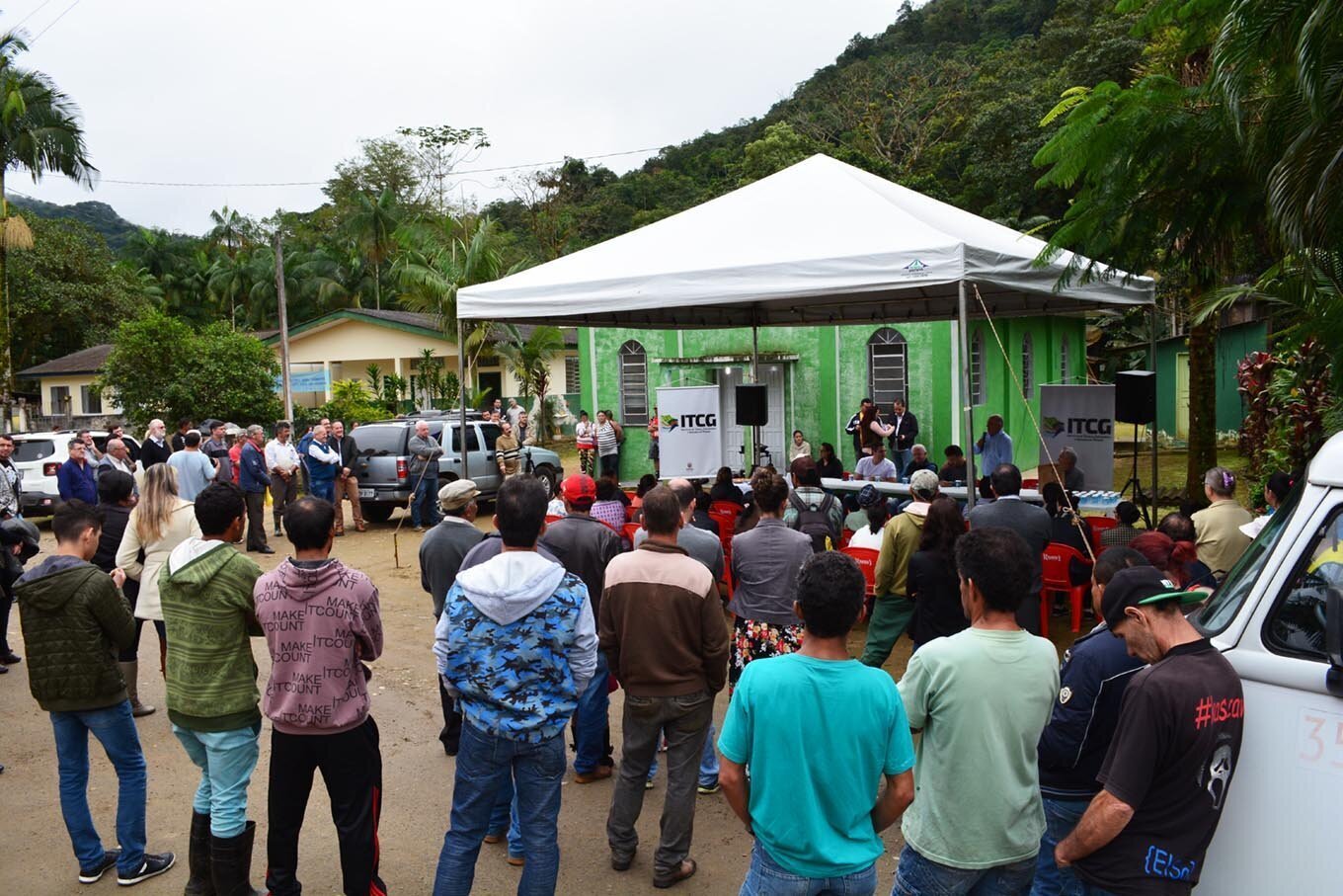 A entrega dos títulos foi feita pessoalmente pelo presidente do ITCG, Amilcar Cabral, e pelo prefeito Roberto Justus. Participaram do evento, realizado na manhã de sexta, na Limeira, o deputado estadual Nelson Justus, o presidente da Câmara, Mordecai de Oliveira, os vereadores Alaor do Cubatão, Gabriel da Ganusa e Vilson Linho, o vice-prefeito e secretário de Finanças, Jean Colbert Dias, e os secretários Lourdes Monteiro (Bem Estar), Elaine Fogaça (Cultura e Turismo), Juliana Pacheco (Meio Ambiente, Pesca e Agricultura), Alex Antun (Saúde), Gabriel Gonçalves (Habitação), Jacson Braga (Segurança) e o chefe de Gabinete, Luis Gruber.