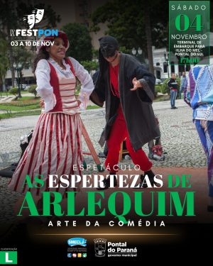 Começa nesta sexta (3) e vai até a sexta-feira da semana que vem (10), o 9ºFestPon – Festival de Teatro de Pontal do Paraná 2023. São seis espetáculos, todos com entrada gratuita.