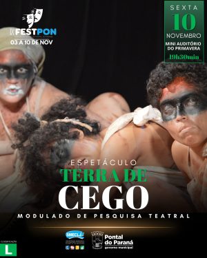 Na sexta (10), na Casa da Cultura, às 19h30, o espetáculo “Terra de Cego”, com o grupo Modulado de Pesquisa Teatral, de Curitiba, encerra o 9ºFestPon.