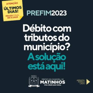 O prazo para adesão ao Programa de Recuperação Fiscal de Impostos Municipais – Prefim 2023, da Prefeitura de Matinhos, termina nesta sexta-feira (8). O Prefim concede descontos de até 100% nas multas e juros para a quitação de dívidas em impostos.