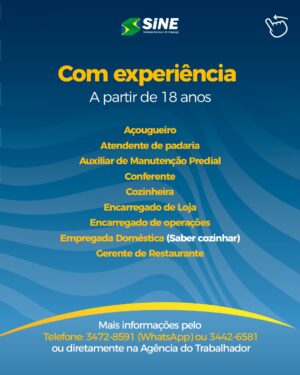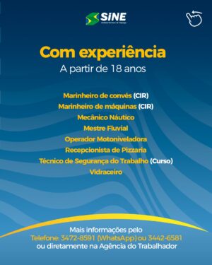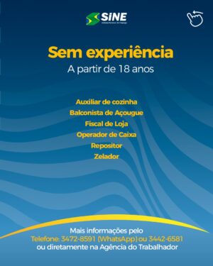 É necessário levar currículo na Agência do Trabalhador, na Rua Dr. Carlos Cavalcante, n°278, Centro.