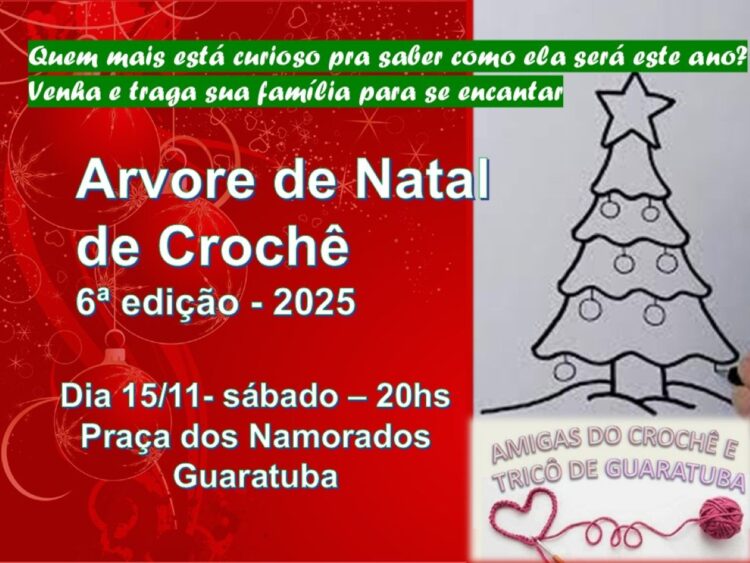A magia do Natal vai colorir novamente a Praça dos Namorados em Guaratuba. No sábado (15), às 20h, acontece a inauguração da Árvore de Natal de Crochê, uma iniciativa das Amigas do Crochê e Tricô de Guaratuba que já se tornou tradição no município.