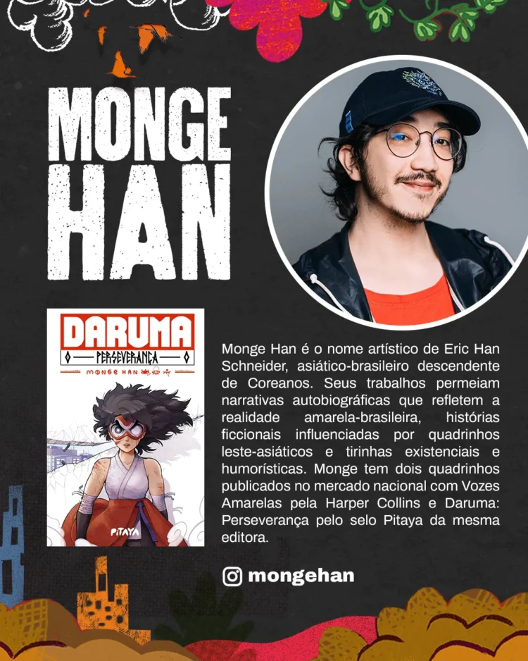 Entre os artistas convidados estão a carioca Cora Ottoni, autora da “Graphic MSP: Denise – Arraso”; a potiguar Ilustralu, autora de “Arlindo”, finalista do Prêmio Jabuti 2022 e ganhadora do 34º Troféu HQ Mix e do CCXP Awards 2022; e Monge Han, autor de “Vozes Amarelas” e “Daruma: Perseverança”.