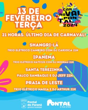 O Carnaval teve a última noite ontem em Guaraqueçaba, Guaratuba e Matinhos, mas prossegue nas demais cidades do Litoral nesta terça-feira (13).