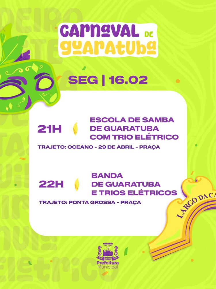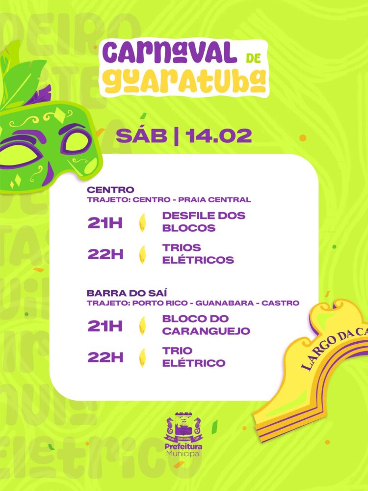 Pela primeira vez, Guaratuba terá um desfile no estilo escola de samba, resultado de um acordo entre os blocos carnavalescos, que decidiram desfilar em alas em 2026. Outra atração aguardada é a Banda de Guaratuba, que este ano se apresenta junto ao tradicional Bloco do Elvis.