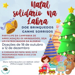 O Coletivo Roda D’Água, de Paranaguá, vai promover dois eventos para as crianças: o 1° Natal Solidário do Labra e o 1° Natal Solidário da aldeia Takuaty.