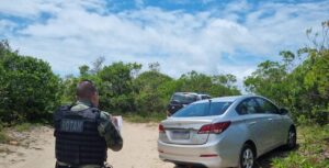 ‘Realizamos patrulhamento ostensivo e preventivo, identificando diversas infrações ambientais, principalmente veículos estacionados em áreas de preservação permanente. Essa prática prejudica a regeneração natural da restinga, um ecossistema delicado e essencial para a biodiversidade.”