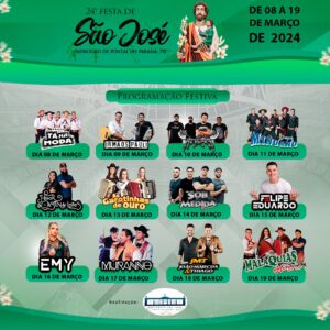 Inicia nesta sexta-feira (8) e vai até o feriado municipal do santo padroeiro de Pontal do Paraná, dia 19 de março, a 24ª Festa de São José.