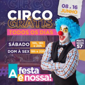 Às 18h e 20h tem o circo e, à noite, a atração nacional é o grupo gaúcho “Os Serranos”, que sobe ao palco às 21h