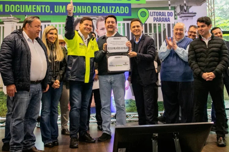 A assinatura ocorreu durante a solenidade de entrega de 212 títulos de propriedade rural no município, que contou com investimento de R$ 455 mil do governo estadual. Na ocasião, o governador também destinou R$ 26 milhões em máquinas de linha amarela para as sete cidades que integram a Associação dos Municípios do Litoral do Paraná (Amlipa).