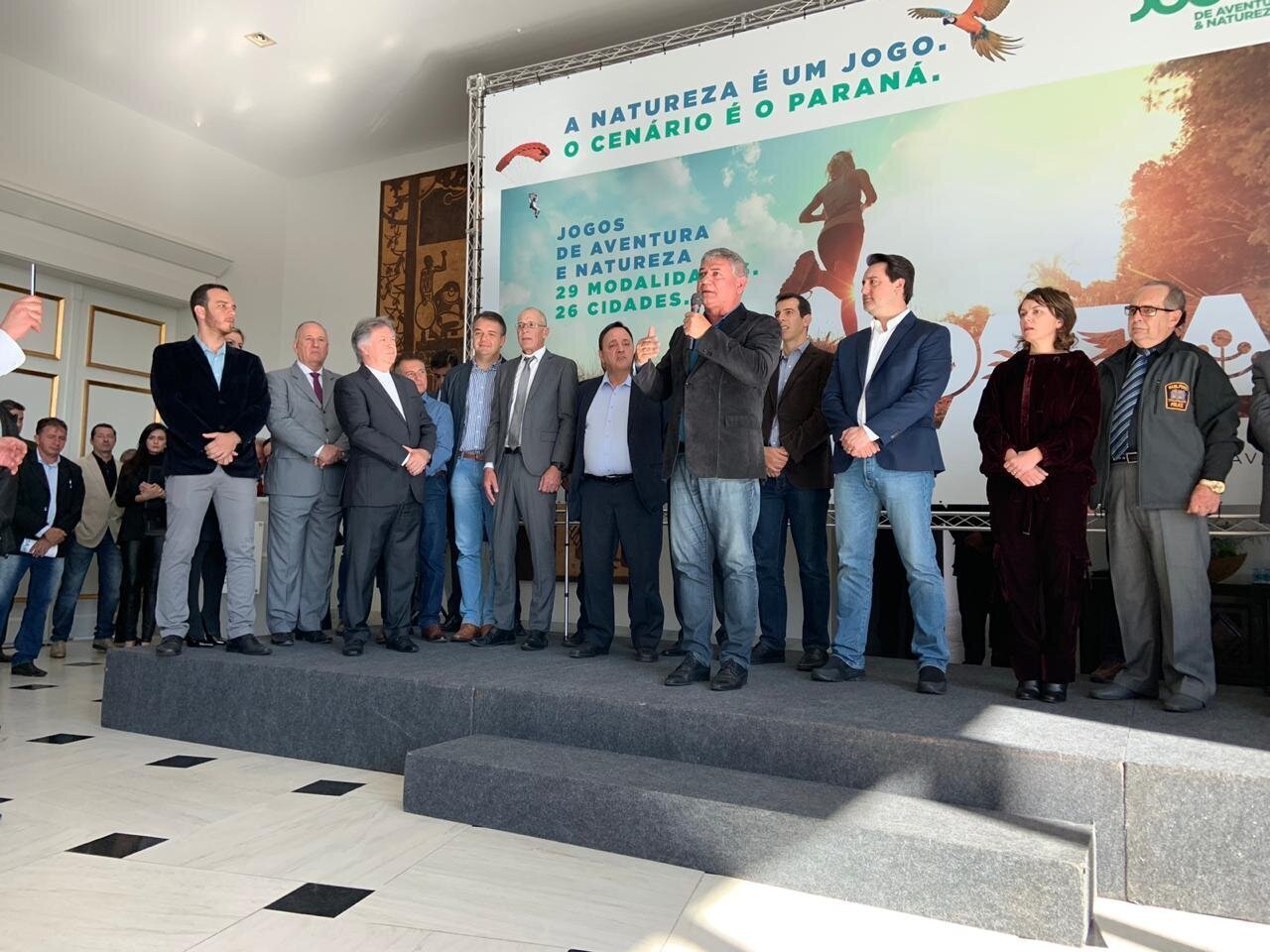 Prefeitos do Litoral participaram nesta terça-feira (23), no Palácio Iguaçu, em Curitiba, do lançamento dos Jogos de Aventura e Natureza, pelo governador Ratinho Junior.