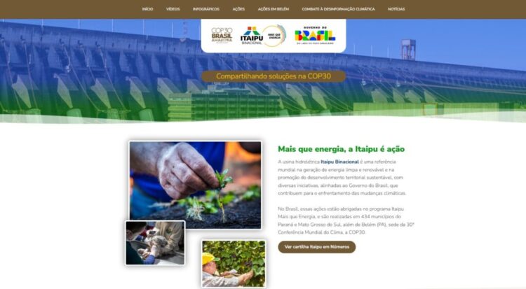 Captura de tela do site com as ações da Itaipu na COP30.