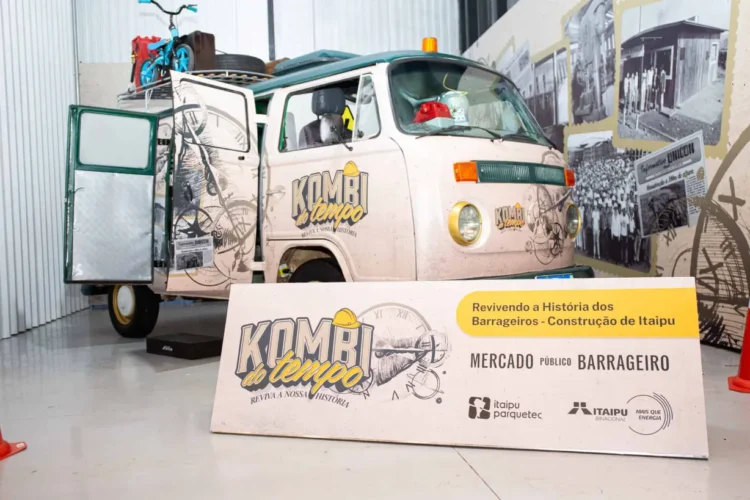 A escolha da Kombi como “túnel do tempo” faz referência a um dos principais meios de transporte utilizados à época pelos próprios barrageiros, reforçando o vínculo da atração com a memória da construção de Itaipu.