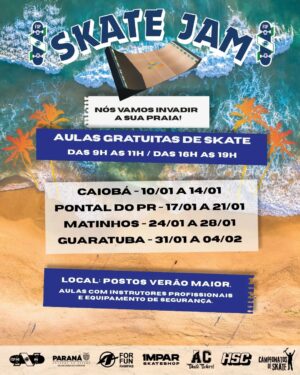Matinhos receberá nos próximos dia o Skate Jam, do Verão Maior Paraná. Na programação, estão aulas de skate e apresentações de skatistas profissionais e amadores.