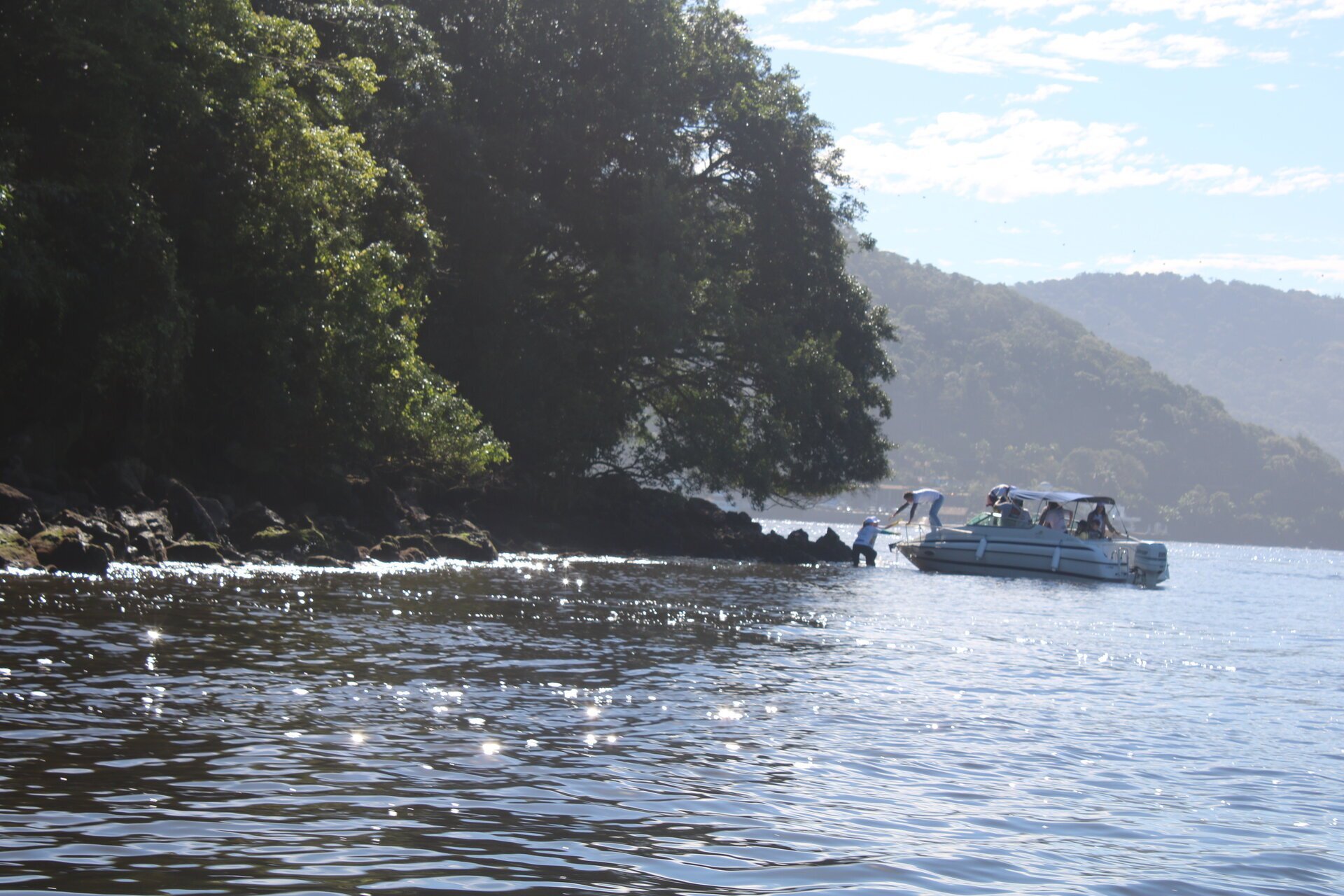 Em seguida, o professor levou até a Ilha da Pescaria o técnico em sa~ude bucal da Prefeitura de Guaratuba Itamar dos Santos, sua namorada Bruba Yamaguchi, fisioterapeuta da Prefeitura de Tijucas do Sul, e o pai dela, Kazuo Yamaguchi, aposentado e morador de Curitiba. Quando chegaram na ilha já havia uma dezena de pessoas coletando lixo que carregaram o barco do professor de lixo. Mas, em menos de uma hora, eles trouxeram três sacos cheios de resíduos. Ficaram impressionados pelo fato de tamanha quantidade de lixo tenha sido provavelmente jogado em apenas um ano, desde o último mutirão.