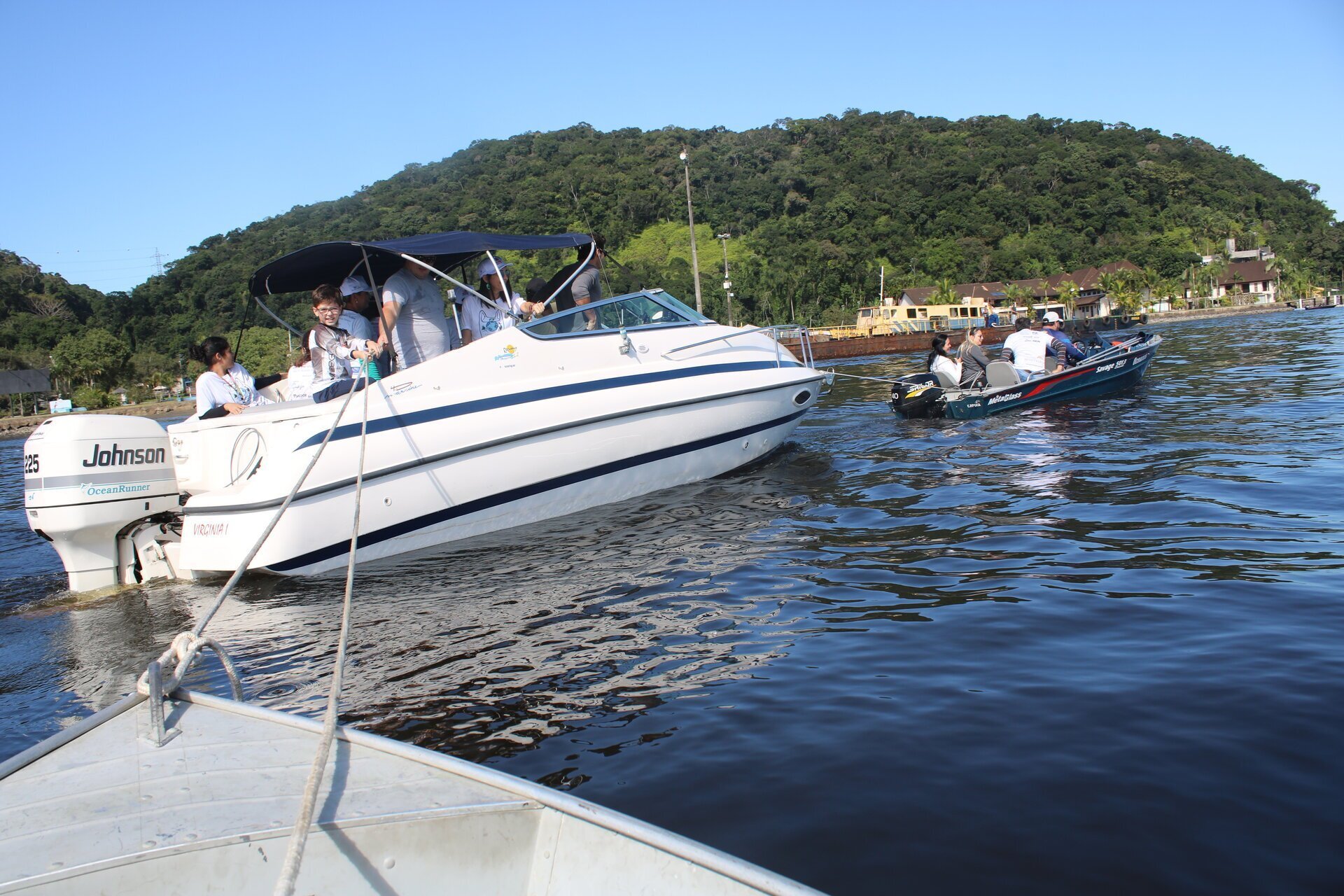 Aproximadamente outras cerca de 30 embarcações levavam e traziam as pessoas e carregavam o lixo recolhido até a base. No comando de uma delas, um pequeno barco de alumínio, estava o professor de filosofia Edgar Fernandez. As primeiras pessoas transportadas pelo professor Edgar, foram as amigas Ellen Priscila, Ana Lívia e Ana Carolina. Elas desembarcaram bem cedo na Ilha dos Ratos.