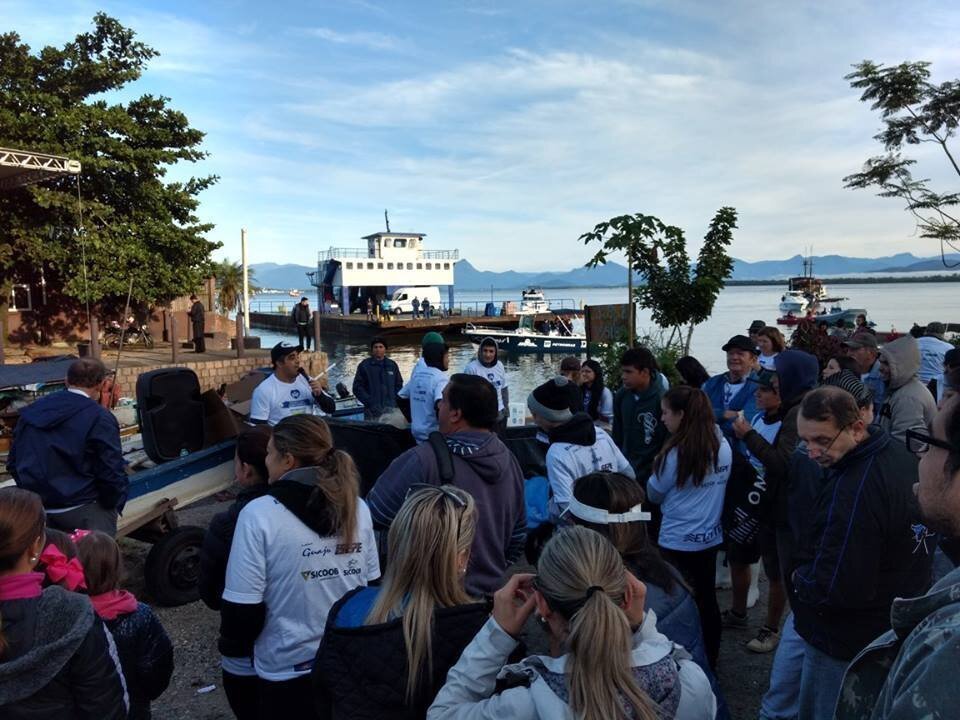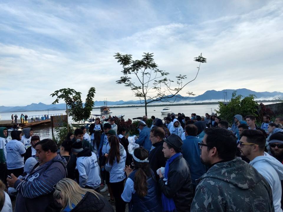 Segundo os organizadores, com apoio de 45 embarcações, aproximadamente 400 pessoas participaram da ação: além do prefeito Roberto Justus e secretários municipais, estavam presentes o secretário de Estado do Meio Ambiente, Antônio Carlos Bonetti, os vereadores Alaor Miranda, Nei Stoqueiro e Professora Paulina, servidores da Prefeitura, estudantes, surfistas, mergulhadores, pescadores artesanais e amadores.