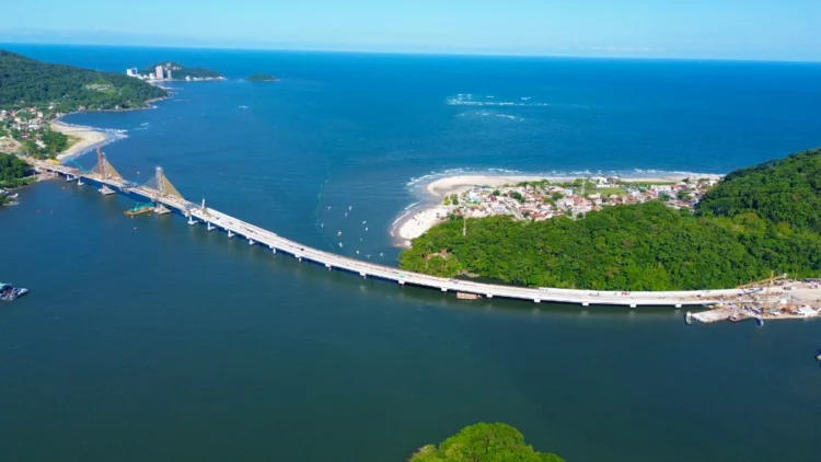 A construção da Ponte de Guaratuba alcançou um dos marcos mais importantes desde o início das obras: o trecho estaiado chegou aos 320 metros totais executados com o fechamento do vão central tendo sido realizado na semana passada. O avanço coloca a obra na reta final de uma das etapas mais complexas da engenharia sobre a Baía de Guaratuba.