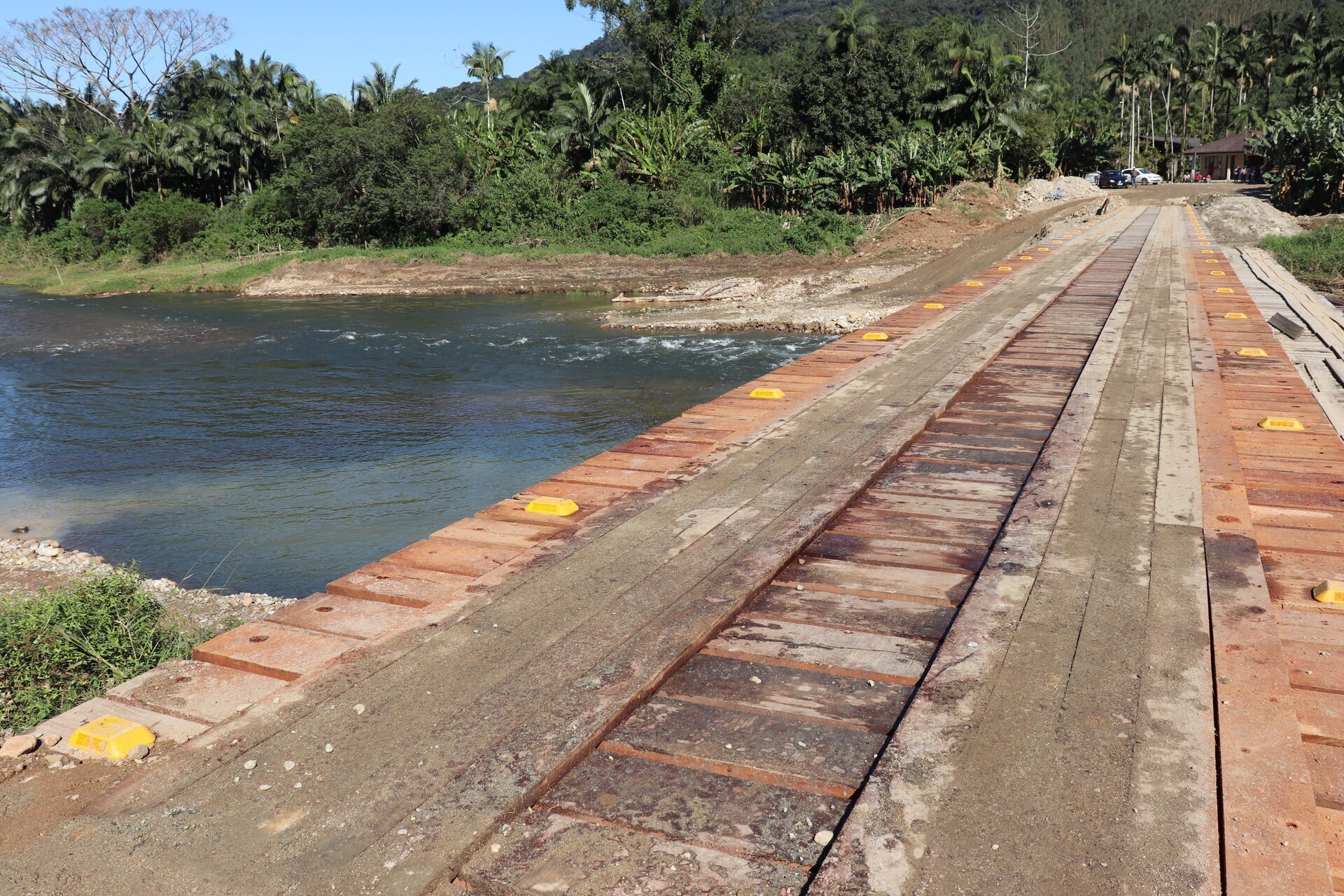 O pioneiro João Stolf, de 68 anos, conta que a ponte antiga, toda de madeira, foi inaugurada em janeiro de 1991 – completou, portanto, 28 anos. Foi construída pelos produtores, foi parcialmente reconstruída na grande enxurrada de março de 2011 e reformada em 2019.