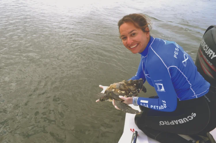 Tartarugas, tubarões, raias e golfinhos fazem parte da rotina da pesquisadora. São esses animais, e os ecossistemas onde vivem, o foco de anos de estudo, monitoramento e dedicação. Camila atua diretamente na conservação da fauna marinha e participa de redes e fóruns nacionais e internacionais que discutem o futuro dos oceanos.
