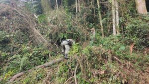 Na quinta-feira (26), os policiais militares do Pelotão da Polícia Ambiental de Guaratuba flagraram um desmatamento no Carvoeiro.