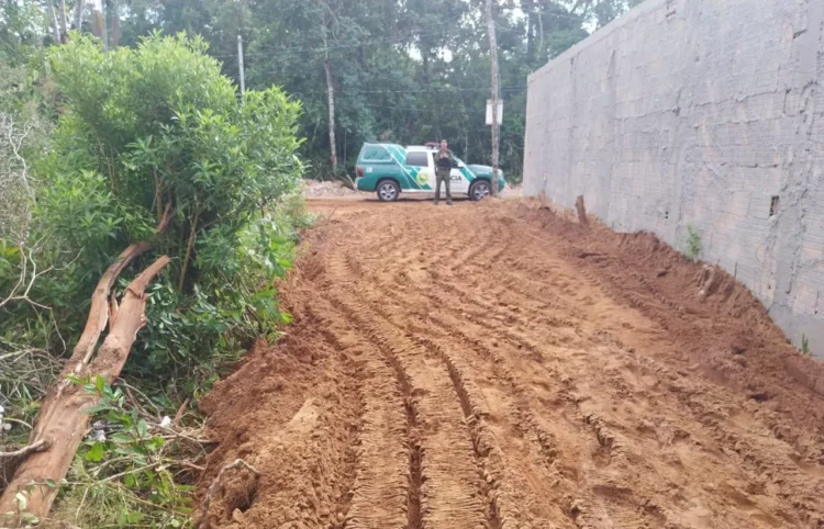 Equipe do Pelotão da Polícia Militar Ambiental sediado em Guaratuba flagrou o corte de vegetação nativa em estágio médio de regeneração, resultando na autuação e embargo de uma área no município de Matinhos. A ação ocorreu após o atendimento à denúncia 181 sobre desmatamento