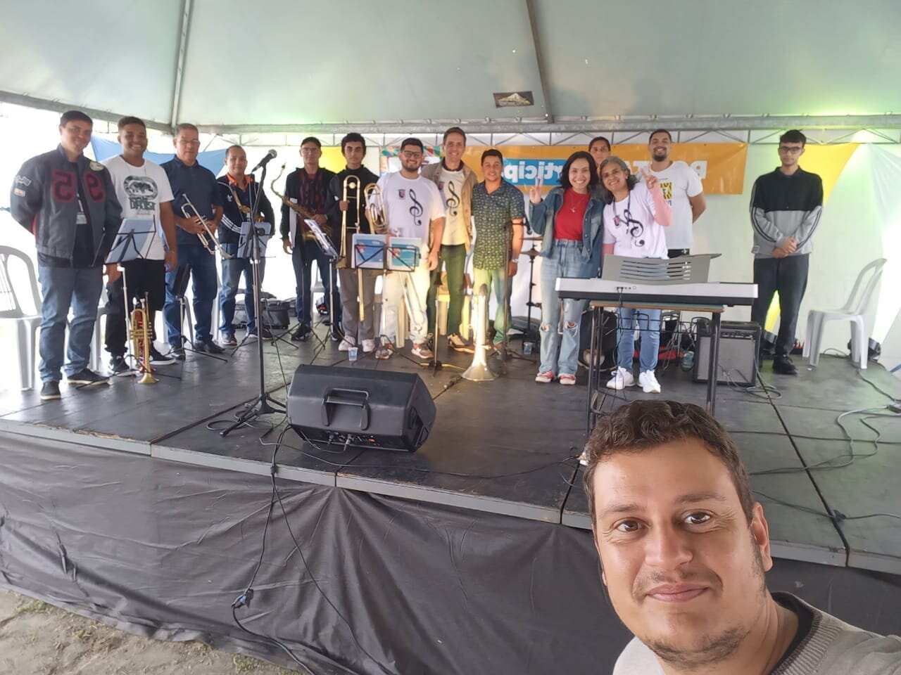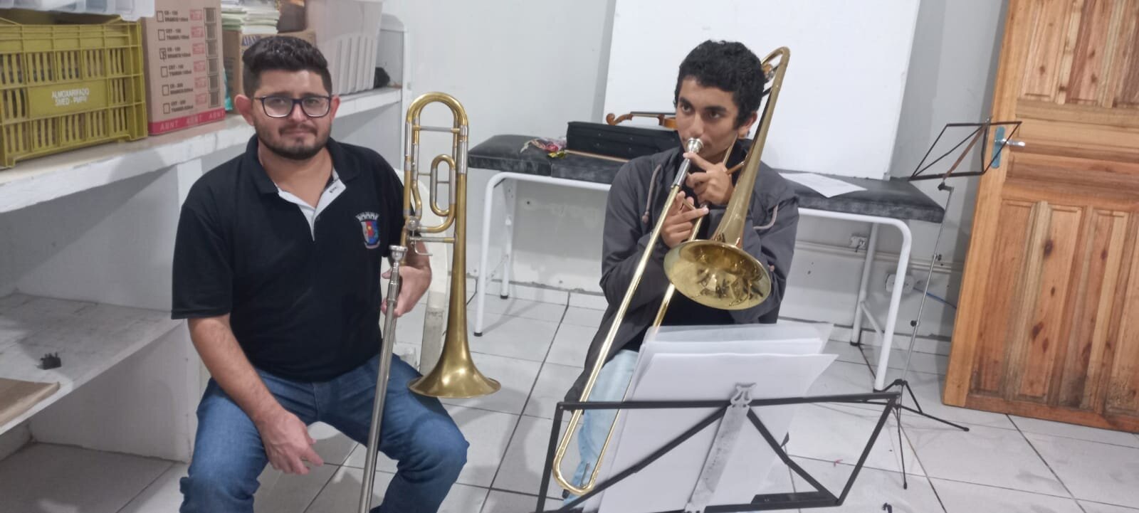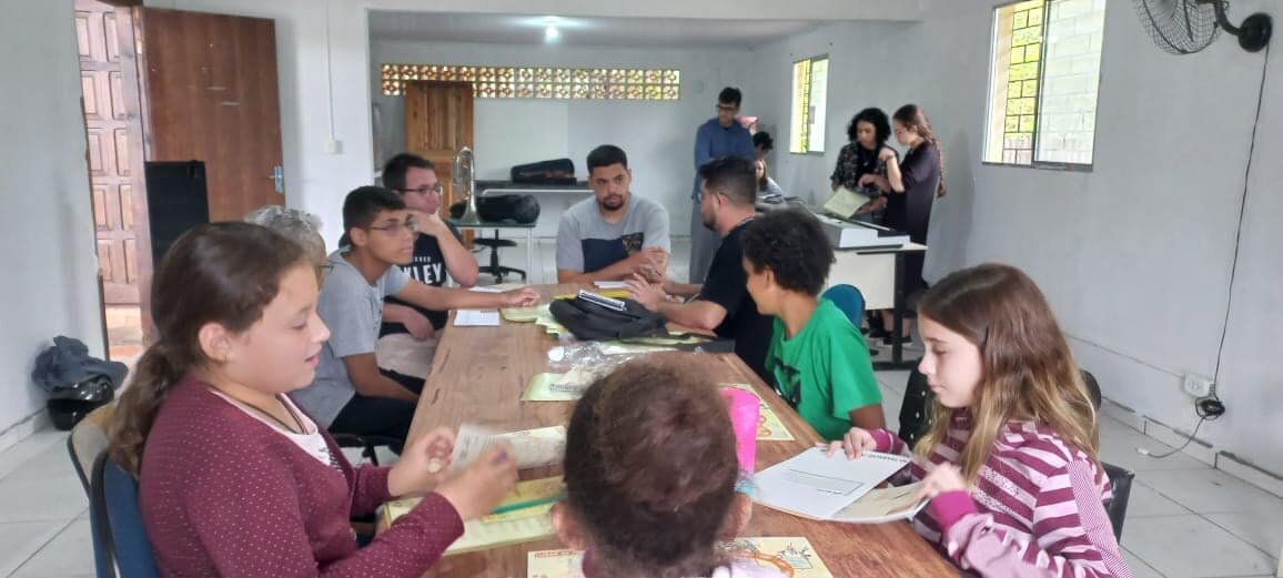 Os professores Josiane Gonçalves e Eliabe Teodoro Júnior, ambos ligados à Secretaria de Esportes, Cultura, Lazer e Juventude de Pontal do Paraná desenvolvem um projeto de musicalização para crianças, jovens, adultos e idosos.