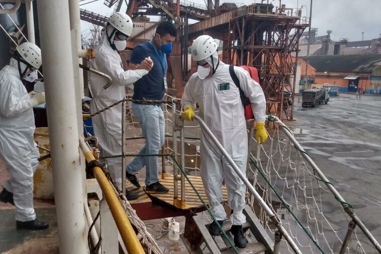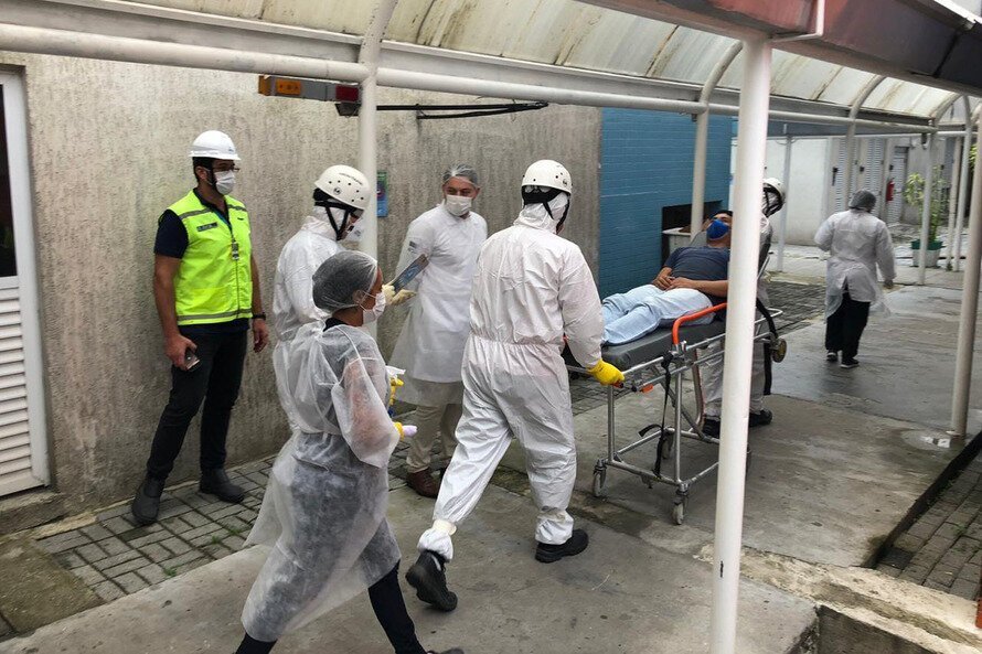 Um exercício simulado reuniu nesta sexta-feira (21) agentes de saúde, trabalhadores e autoridade portuária no combate ao coronavírus no Porto de Paranaguá.