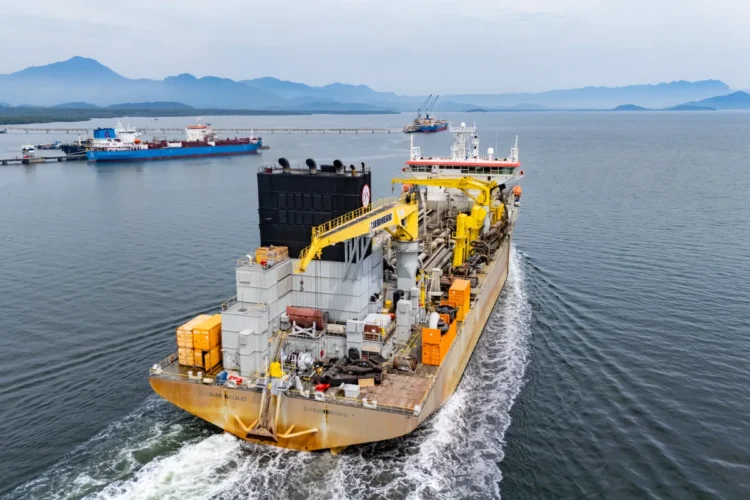 A draga Galileo Galilei tem capacidade de cisterna para 18 mil metros cúbicos. “É considerada um equipamento de grande porte e já executou diversos serviços aqui no porto em campanhas passadas. As empresas têm conhecimento da área e os serviços anteriores foram muito efetivos”, ressalta Gonçalves.