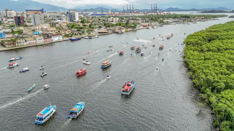 Cortejo náutico reuniu mais de mil fiéis e cerca de 50 embarcações na Baía de Paranaguá, com apoio da Prefeitura, presença da Marinha do Brasil e participação de lideranças religiosas e autoridades locais em uma celebração que integra fé, tradição e cultura parnanguara