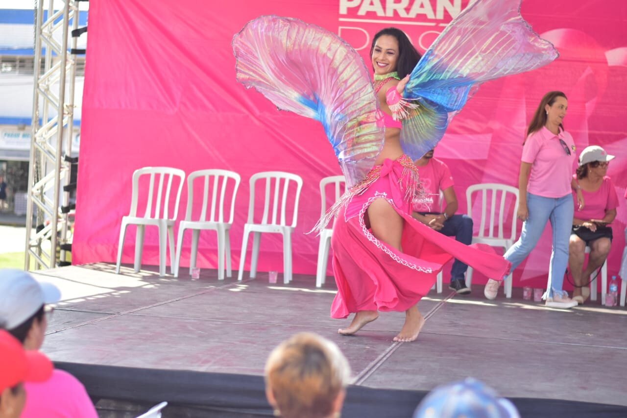 O encerramento da campanha Paraná Rosa em Guaratuba, nesta quarta-feira (30), contou com a participação da primeira-dama do Estado, Luciana Saito Massa, e com uma caminhada.