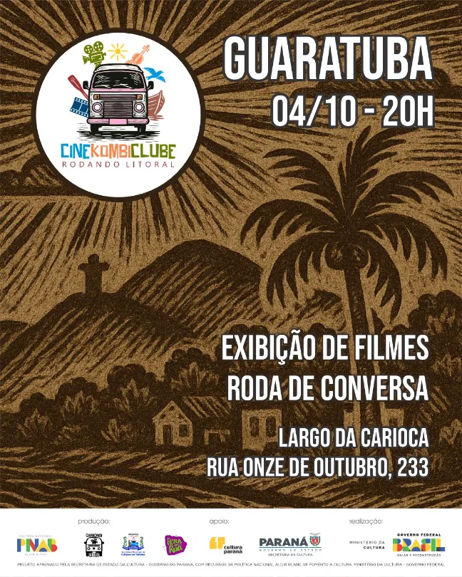 O projeto Cine Kombi Clube – Rodando o Litoral encerra sua jornada cinematográfica neste fim de semana com duas sessões gratuitas ao ar livre em Guaratuba e Matinhos, celebrando o encontro entre cinema, cultura popular e os saberes dos territórios.