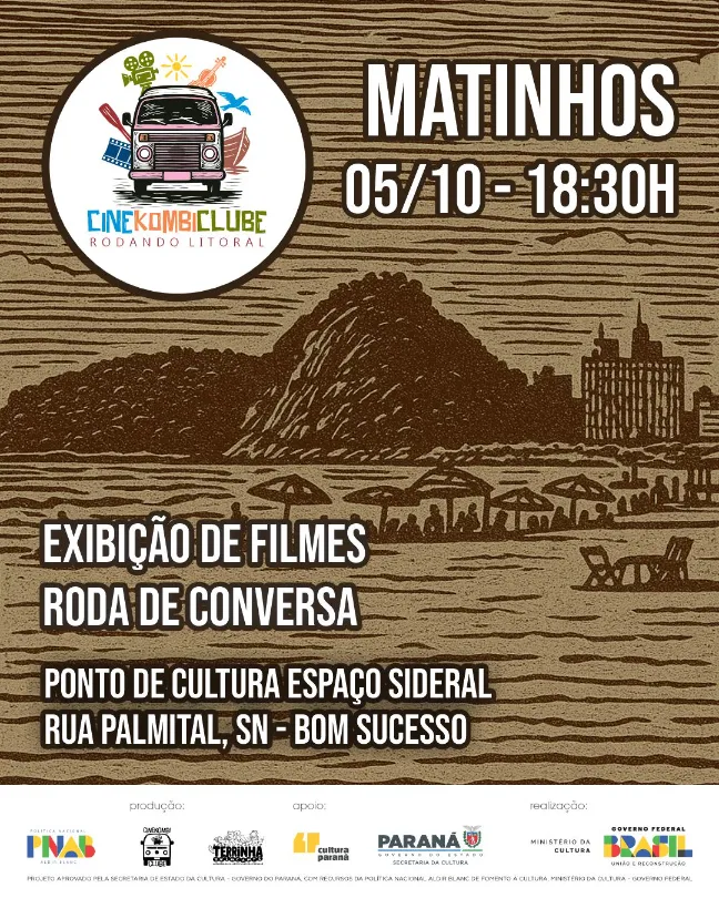 Com uma estrutura móvel montada em uma kombi adaptada para projeção de filmes, o projeto percorreu seis cidades do litoral paranaense ao longo das últimas semanas — Paranaguá, Pontal do Paraná, Morretes, Antonina, Guaratuba e Matinhos – com sessões gratuitas de cinema seguidas de rodas de conversa com o público, promovendo o audiovisual como ferramenta de diálogo, educação e resistência cultural.