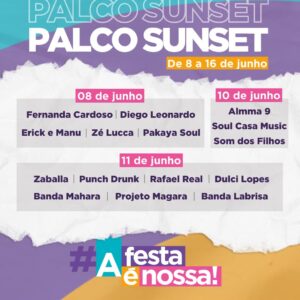 As apresentações dos artistas da cidade acontecem todos os dias, no Palco Sunset, a partir das 17h. Durante as comemorações, mais de 40 artistas da cidade irão se apresentar, abrindo os shows nacionais.